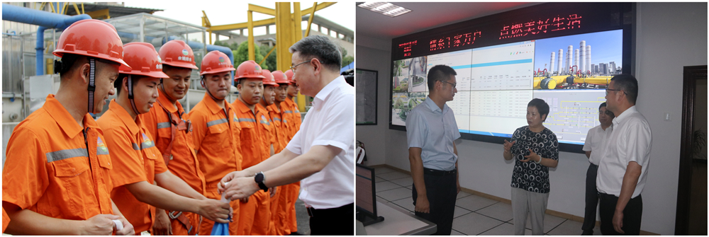 在天然氣公司九壘山門站,市人大常委會(huì)主任諸曉蓓一行仔細(xì)詢問了工作人員高溫巡檢工作情況,對他們冒酷暑、戰(zhàn)高溫辛勤工作表示感謝,并反復(fù)叮囑他們要提高自我保護(hù)意識(shí),調(diào)整作息時(shí)間,注意勞逸結(jié)合,同時(shí)保障高溫期間天然氣的安全運(yùn)行。