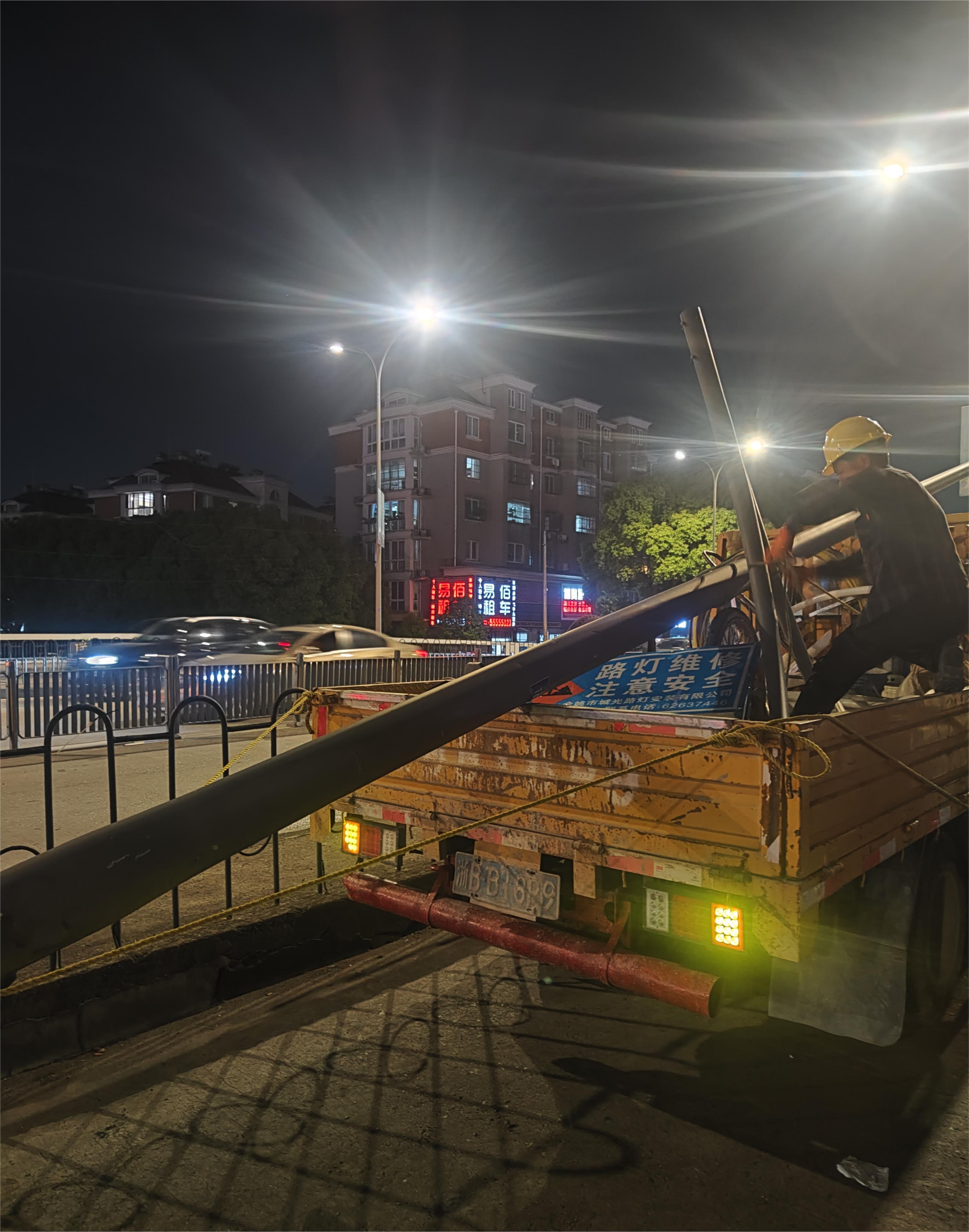 路燈桿被撞倒伏 城光公司快速處置消險(xiǎn)